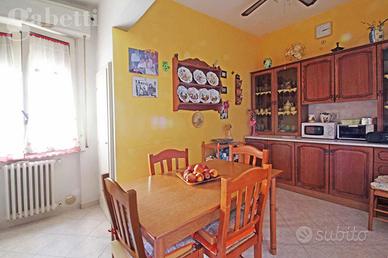 Senigallia, zona centro/mare, quarto piano di 144 mq con garage e ascensore. Ingresso ampio e luminoso con balcone vista centro citta', cucina abitabile con balcone, tre camere, due bagni.