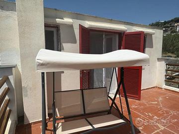 La proprietà dispone di climatizzatore, cisterna idrica e di un posto scooter, elementi particolarmente funzionali e molto richiesti nella zona. La presenza dei due terrazzi e del cortile rende la casa adatta a chi cerca spazi fruibili e luminosi, ideali per momenti conviviali, relax e per godere della tranquillità tipica di Serrara Fontana.