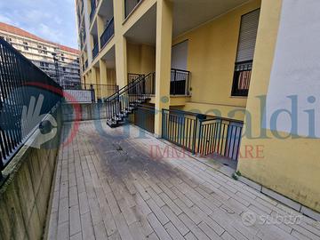 L'IMMOBILE PROPOSTO E' POSTO AL PIANO RIALZATO, CON DOPPIA ESPOSIZIONE SUD-OVEST. ESSO E' SUDDIVISO SU DUE LIVELLI: PRIMO LIVELLO COMPOSTO DA AMPIO INGRESSO, SALONE CON USCITA SUL TERRAZZO, CUCINA ABITABILE, CAMERA MATRIMONIALE, E BAGNO; SECONDO LIVELLO COMPOSTO DA OPEN SPASE LUMINOSO, GRAZIE ALLE PORTE A FINESTRA CON ACCESSO DIRETTO AL TERRAZZO, RIPOSTIGLI E LAVANDERIA. In tutto l'appartamento è posato un pavimento in gress, infissi in legno con doppi vetri, predisposizione di impianto di aria condizionata e allarme, sensori per fughe antigas, luce di emergenza, impianti antenna televisiva centralizzati, teleriscaldamento. Basse spese condominiali. Libero subito. Posti auto scoperti a piano terra da euro 15.000 - box a piano interrato da Euro 25.000 - posti moto piano terra Euro 6.000. Ben collegato dai mezzi di trasporto: Autobus, metropolitane, stazione ferroviaria.