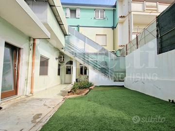 Al piano terra, l'ingresso conduce a un luminoso soggiorno con accesso al cortile privato, una sala da pranzo accogliente, una cucina abitabile completamente attrezzata, un antibagno con zona lavanderia e un bagno completo di doccia.