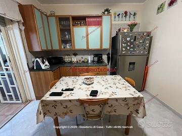 Gli interni sono ben distribuiti e pronti all'uso: ingresso con porta blindata, soggiorno accogliente, cucina abitabile separata, camera da letto matrimoniale, cameretta, ripostiglio e due bagni, uno con doccia e uno con vasca. Una configurazione pratica, adatta a nuclei familiari o a chi cerca spazi comodi senza dispersioni.