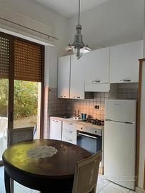 Appartamento situato al piano terra, composto da: due camere, soggiorno con angolo cottura, bagno, ripostiglio e giardino di 60 mq estendibile e dotato di casetta con camino. Possibilità di aggiungere posto auto.