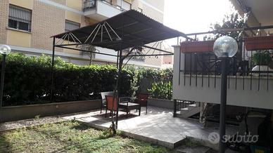 Affittasi appartamento signorile composto da ingresso, ampio salone 2 camere da letto, bagno cucina, ripostiglio. Interamente ristrutturato con infissi nuovi. Cantina e posto auto. Balcone semi circolare e giardino privato interno. Posto auto interno condiviso a rotazione. L'immobile inserito in un contesto semi-residenziale con palazzo in cortina dispone di un proprio giardino interno di proprietà esclusiva in una zona molto tranquilla ma vicinissima a tutti i servizi principali quali supermercati, farmacie ecc. Zona Via Nocera Umbra - Via Lugnano in Teverina, collegata in modo eccellente dai mezzi pubblici e la linea metro A (500 m - furio camillo). Solo persone referenziate
