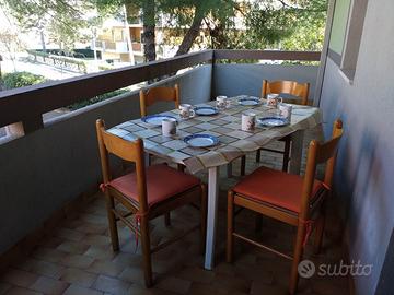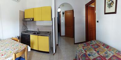 Appartamento al terzo piano con ascensore composto da camera matrimoniale, salotto con angolo cottura, stanzino senza finestra ove è possibile posizionare anche letto singolo o castello, bagno con doccia, balcone molto grande ad angolo su due lati dell'appartamento ed adatto per mangiare fuori all'aperto. L'appartamento può essere già abitato perchè è funzionante in tutto. Arredamento essenziale usato ma in buono stato e funzionante. Ideale per le vacanze al mare che dista solo 400 mt fattibili in 5 minuti di passeggiata. Zona ben servita di negozi e altri esercizi (farmacia, bar, comune, carabinieri, ecc). La vendita è diretta senza intermediazione di agenzia senza commisisoni.