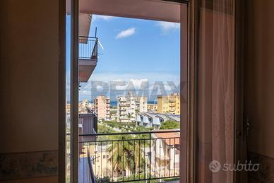 Appartamento al 5°piano di 6 piani con ascensore, molto luminoso con vista mare. Gli spazi interni sono ben organizzati, l'immobile è composto da soggiorno, cucina abitabile, cameretta, camera matrimoniale, bagno nel balcone si trova la lavanderia. Inserito in una palazzina in ottime condizioni, compreso nel prezzo anche il garage di 21mq.
