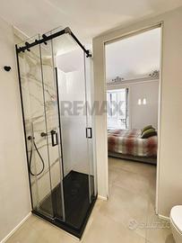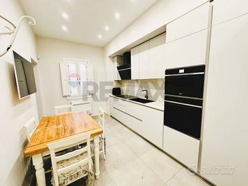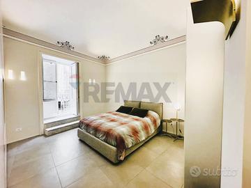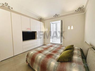 L'appartamento con ingresso da via Roma, è composto da cucina, salone, cameretta con cabina armadio, camera con balcone e bagno privato, secondo bagno con annessa zona lavanderia.