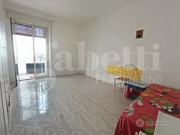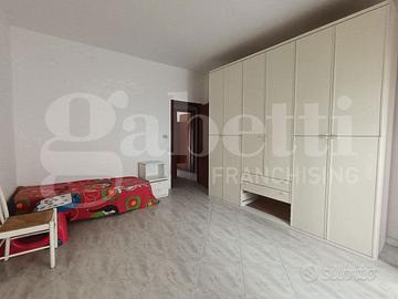 L'appartamento ha disimpegno d'ingresso, corridoio, salone doppio con due accessi al balcone, cucina abitabile con portafinestra sul secondo balcone, bagno con vasca e doccia e finestra, camera matrimoniale con accesso al balcone (comune al salone), camera da letto con accesso al balcone verandato (che funge da lavanderia), ripostiglio.