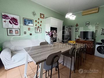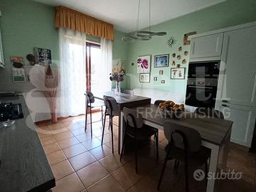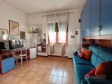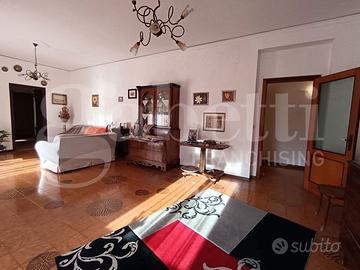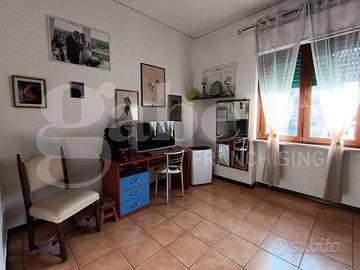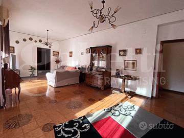 grande appartamento già diviso in due unità immobiliari autonome. Le due unità immobiliari hanno un disimpegno d'ingresso comune, che distribuisce gli ingressi autonomi delle due case. La prima unità immobiliare ha ingresso sul grande salone doppio con due accessi al balcone esclusivo, corridoio "aperto" con accesso alla sala da pranzo con annesso cucinino e collegato alla veranda, camera da letto singola con finestra, bagno con finestra e sezione lavanderia. La seconda unità immobiliare ha corridoio d'ingresso, salone doppio con finestra e accesso alla veranda esclusiva, disimpegno, camera da letto singola con finestra, camera da letto matrimoniale con finestra, secondo disimpegno, bagno con finestra doccia e vasca, grande cucina con accesso alla veranda esclusiva. Un delle due unità appare in migliori condizioni grazie alla ristrutturazione degli anni 2000, mentre la seconda è più datata. I posti auto, nel contesto recintato con verde condominiale, sono liberi.