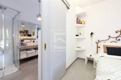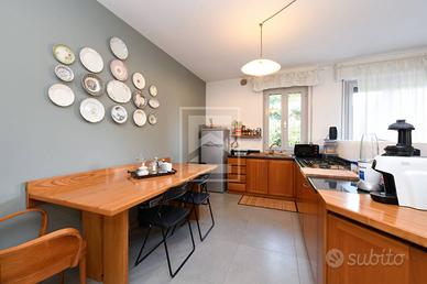 L'appartamento è inserito in un edificio signorile con giardino condominiale elegantemente piantumato composto da sole 8 unità abitative e con basse spese condominiali (80 euro mensili).