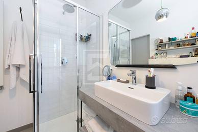 Tramite disimpegno si raggiungono la camera matrimoniale ampia con porta scorrevole che porta al bagno padronale finestrato, una seconda camera matrimoniale collegata ad un piccolo balconcino, un secondo bagno più ampio elegantemente arredato e una terza camera spaziosa adatta come camera da letto, studio, zona per gli ospiti che ti conduce ad un giardino privato di 150 mq dove rilassarsi e mangiare all' aperto.