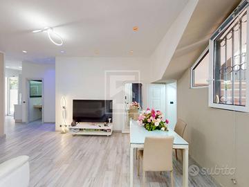 Lappartamento, completamente rinnovato e arredato con gusto, è progettato per garantire comfort e funzionalità, con ambienti ben distribuiti: ampio soggiorno con cucina a vista, due camere da letto, bagno moderno curato nei dettagli e un pratico ripostiglio. Completa la proprietà una splendida terrazza di circa 25 mq, perfetta per pranzi allaperto e momenti di relax. Incluso un posto auto privato.