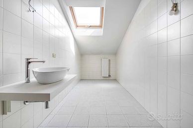 Al piano superiore si sviluppa un grande open space con lavanderia e una seconda porta blindata di accesso al vano scala condominiale, che rende il piano autonomamente accessibile.