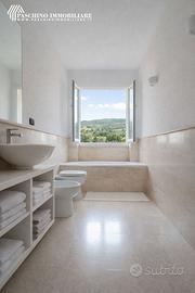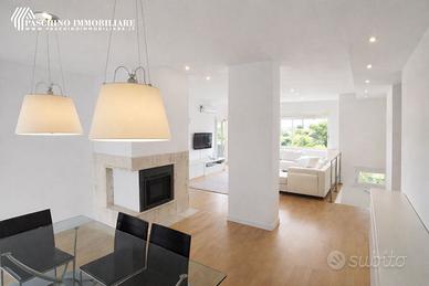 L'immobile, completamente ristrutturato circa dieci anni fa, si presenta oggi in condizioni eccellenti, grazie alla cura costante e all'attenzione con cui è stato mantenuto nel tempo dalla proprietà. Gli ambienti, luminosi e ben distribuiti, esprimono uno stile contemporaneo attraverso finiture di qualità e spazi generosi. La zona living si sviluppa in un elegante openspace dove l'area salotto, accogliente e ben definita, si apre verso l'esterno con accesso diretto alla veranda, dalla quale si gode di una piacevole vista sulla campagna con scorci di mare. La zona pranzo, in naturale continuità con la cucina, è valorizzata dalla presenza di un camino, elemento che dona calore e carattere all'ambiente, rendendolo particolarmente accogliente. La cucina, separata ma perfettamente integrata con gli spazi, dispone di un comodo affaccio sul balcone, ideale per garantire praticità e luminosità. La zona notte si compone di due ampie camere matrimoniali, entrambe dotate di cabina armadio, e di due bagni rifiniti con cura, uno con vasca e uno con doccia.