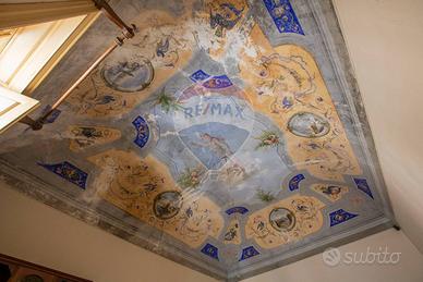 al primo piano troviamo un terrazzo a livello, la cucina, il bagno, due camere da letto, un ripostiglio un soggiorno con le volte con affresco ed un'ampia camera adibita a studio ma fruibile anche come camera da letto.
