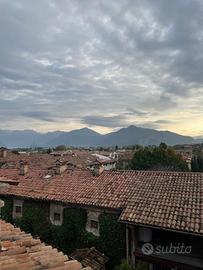 L'edifico originario è una cascina costruita nel 1800, di cui la struttura attuale conserva tutto il sapore. L'arredamento moderno si fonde perfettamente con le travi in legno a vista e il pavimento in cotto, creando un'atmosfera accogliente e raffinata. L'appartamento in un ambiente tranquillo offre una splendida vista sui tetti del centro storico, sul lago e sulle montagne.