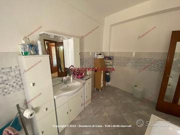 L'immobile presenta tripla esposizione con due balconi ed è composto da salotto, cucina/soggiorno, camera da letto, due camerette, ripostiglio e due bagni (uno con bagno, uno con doccia).