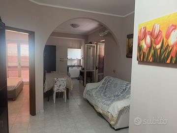 Si propone in affitto appartamento sul mare , su villetta a 3 piani , composto da 2 camere da letto una stanzetta , cucina , 2 bagni .. con balconi ... posto auto e recinzione con cancello automatico , climatizzato ..., dista dal mare 700 mt con cancello che si scende subito in area mare ...