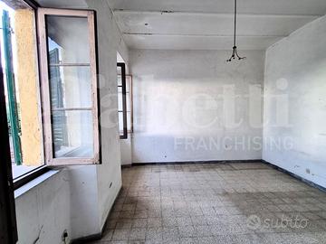 Con una superficie di 90 mq, questo appartamento al primo piano offre tre ampie stanze luminose, di cui una con balcone che affaccia sulla via ricca di servizi, un corridoio d'ingresso e un wc. Da ristrutturare, questo appartamento centrale si trova a due passi dalla piazza principale del paese e con comodo parcheggio sottostante l'immobile.