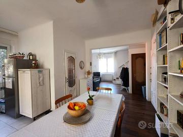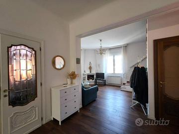 Rif:(86984030) - AD.ZE STRADA DI FIUME All'incrocio di via del Veltro con via del Destriero, a pochi passi dai servizi e dai collegamenti con il centro città, proponiamo una particolare soluzione abitativa disposta su tre livelli caratterizzati da accessi indipendenti e collegati internamente fra loro da una comoda scala, all'interno di uno stabile degli anni '50 di soli 4 enti, immerso nel verde e defilato dalla strada principale. L'appartamento si compone al piano principale di ampia e luminosa zona giorno con numerose finestre e cucina a vista, bagno completo e finestrato con vasca freestanding, mentre al primo piano si trovano tre camere da letto, di cui quella matrimoniale dotata di piacevole balconcino, ed un secondo bagno completo e finestrato, dotato di un grande box doccia walk-in. Al piano seminterrato e con eventuale secondo accesso indipendente si trova un'ampia taverna completa di bagno e lavanderi/cucinotto, che si configura come un ulteriore monolocale a disposizione per gli ospiti o per le feste, ed una cantina. Di pertinenza e proprietà esclusiva dell'unità ci sono inoltre alcuni piacevoli spazi verdi recintati ad uso giardino e frutteto, facilmente fruibili in quanto antistanti all'appartamento L'impianto di riscaldamento è termoautonomo con caldaia a metano a condensazione, camino nella zona giorno e stufa a pellet in taverna. L'appartamento, recentemente ristrutturato, si presenta in ottime condizioni, mentre le parti comuni del fabbricato (facciate , balconi e percorsi) si presentano in condizioni solo discrete, ma garantiscono delle spese di gestione condominiale estremamente basse. La casa non dispone di accesso auto e di area di parcheggio dedicata, e per accedere alla palazzina e necessario percorrere una plurima rampa di scale all'interno del cortile condominiale (circa 60 gradini). - Classe: G - IPE: 175.00 kWh/mq anno
