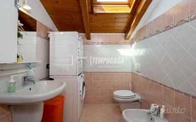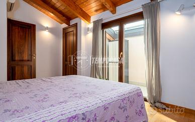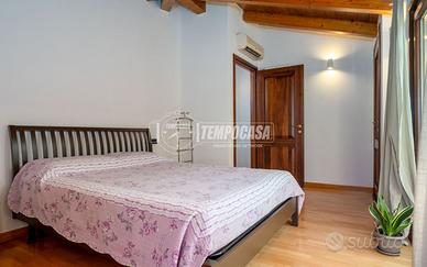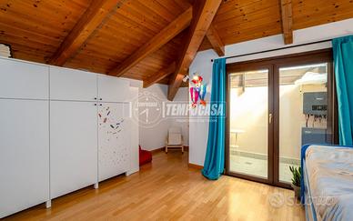 Una comoda scala in legno conduce al secondo livello, dove troviamo altre due camere matrimoniali, entrambe dotate di un balcone, un disimpegno e il secondo bagno, completo di doccia, attacchi per lavatrice e asciugatrice, e lucernario. Una delle due camere dispone anche di un pratico ripostiglio.