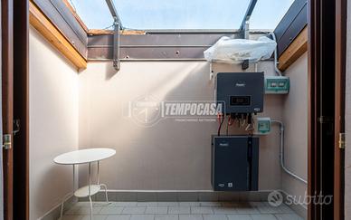 L'appartamento è dotato di infissi in PVC con vetro doppio, zanzariere e climatizzazione con split a doppia funzione: uno nella zona giorno e due al piano superiore. Il riscaldamento è autonomo e l'efficienza energetica è ulteriormente migliorata dalla presenza di pannelli fotovoltaici con batteria d'accumulo, per un importante risparmio sui consumi.