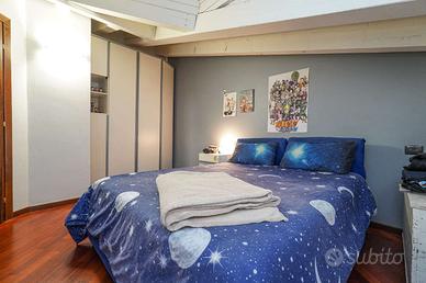 La zona notte, situata al piano superiore (piano secondo), ospita due camere da letto, bagno con vasca oltre che un ballatoio dove si può ammirare dall'alto la particolarità di questa proprietà.