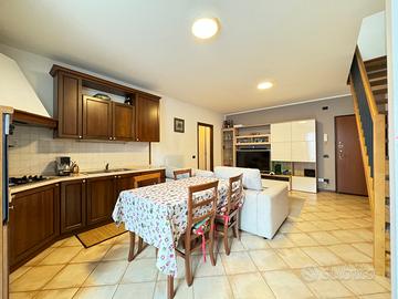 Al primo piano la soluzione si compone da un'ampia e luminosa zona living con cucina a vista, che accoglie abbondante luce naturale creando un'atmosfera calda e invitante, il tutto collegato con un terrazzo. Allo stesso piano troviamo un disimpegno, camera matrimoniale con terrazzo e bagno finestrato con doccia.