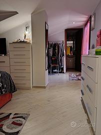 Bellegra Rm, in contesto residenziale con entrata indipendente si propone in vendita porzione di trifamiliare composta da :Ampio salone con balcone e idrostufa a legna , angolo cucina, due camere da letto con balcone , bagno con box doccia. Si accede al piano di sopra tramite scala a giorno in castagno come gli infissi a doppio vetro termico , ove troviamo una camera servita di cabina armadio, bagno con vasca idromassaggio e vivibile terrazzo ove godere di un affaccio mozzafiato; Completa la proprietà recentemente ristrutturata , un posto auto scoperto , L immobile inoltre viene venduto completamente arredato di mobilio , termo autonomo e termo convettori