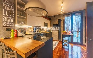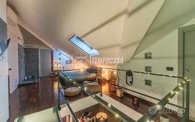 INTERNO: L'appartamento è composto da due livelli: Primo livello: ingresso sull'ampio e luminoso soggiorno con accesso al terrazzo, ripostiglio, cucina a vista e primo bagno, dalle scale in zona giorno si accede al secondo livello dove troviamo la camera matrimoniale con presente un box doccia, ripostiglio ed il secondo bagno Completa la soluzione una cantina di pertinenza e possibiltá di box triplo a parte a 35.000 euro! L'immobile é stato ristrutturato e presenta un design moderno avendo dato particolare attenzione ad ogni minimo dettaglio. La soluzione infine gode di ottima luminosità, riscaldamento autonomo e aria condizionata.