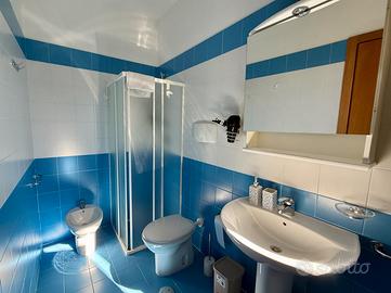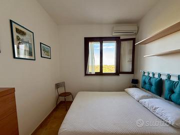 Si compone di zona giorno e zona notte e troviamo: una piccola veranda, un ingresso soggiorno al piano terra con bagnetto di servizio, due camere da letto con affaccio e vista mare e un altro bagno al primo piano nella zona notte.