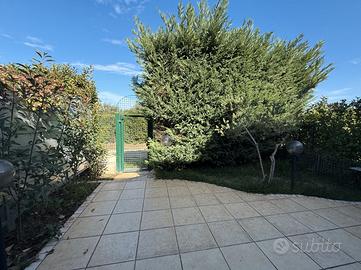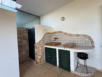 Il giardino retrostante è un angolo accogliente, dotato di una zona doccia e di una cucina aggiuntiva, perfetta per le serate estive con amici e familiari.