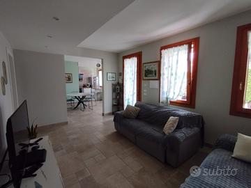 Appartamento ristrutturato completamente nel 2023. L'immobile è strutturato tutto al piano terra con entrata indipendente e circondato dal giardino su tre lati. È composto da salotto sala da pranzo e cucina open space, poi un corridoio porta nel reparto notte dove troviamo due camere matrimoniali e una singola e due bagni finestrati (uno con doccia e uno con vasca). Proseguendo si arriva ad un piccolo disimpegno che porta ad una spaziosa cantina e una lavanderia/ vano caldaia di circa 16 mq. Impianto di riscaldamento a pavimento con termostato in ogni stanza, caldaia a condensazione già predisposta per impianto fotovoltaico, finestre in legno con doppio vetro camera, scuri in alluminio, cappotto interno perimetrale, predisposizione allarme su tutte le finestre e predisposizione di videosorveglianza esterna. Aria condizionata sia nel reparto giorno che nel reparto notte. Acompletare il tutto un bellissimo giardino condominiale e un parcheggio che può ospitare fino a sei macchine. A venti metri dalla fermata dei pullman, a due km dalla stazione dei treni e a tre km dal casello autostradale. NO AGENZIE, GRAZIE