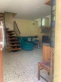 Piano Primo openspace soggiorno-cucina con stufa ad ole in pietra ollare, una stanza, disbrigo, bagno e scala interna comunicante con la zona mansarda.