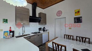 A Ponte Caliano, vicino Arezzo, proponiamo in vendita un appartamento ristrutturato nel 2019, situato al secondo piano di una piccola palazzina senza ascensore. L'immobile, di circa 100 mq, si presenta in ottime condizioni ed è composto da ingresso, una cucina abitabile moderna con pratico ripostiglio adibito a zona lavanderia e caldaia, e un soggiorno doppio con luci led e molto luminoso, entrambi con accesso a un lungo balcone che collega la zona giorno. La zona notte comprende una camera matrimoniale, una camera doppia e un bagno finestrato con doccia. La casa è dotata di infissi doppi in alluminio, cappotto interno e climatizzatore, per garantire comfort e risparmio energetico in ogni stagione. Completa la proprietà un ampio garage di ben 48 mq al piano terra, provvisto di bagno e lavandino, perfetto come rimessa o come spazio aggiuntivo per hobby o deposito. Un'ottima soluzione abitativa per chi cerca comodità, spazi ben distribuiti e un immobile pronto da abitare. NON TRATTABILE. RIF. VQ354