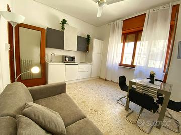 Fittasi ad uso transitorio fino a Settembre 2026 grazioso e luminoso appartamento in pieno corso Vittorio Emanuele al quinto piano in una palazzina con portiere composto di un ampia camera matrimoniale arredata con balcone, ampio salone/cucina attrezzata, lavatrice, condizionatori
