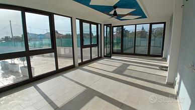 Dotato di spazi esterni molto grandi e rifiniti con materiali di qualità e di pregevole fattura come gli infissi in alluminio taglio termico di ultima generazione all'interno e veneziane all'esterno.