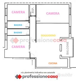 L'immobile è composto da un ampio ingresso open space con accesso ad un balcone, tre comode camere da letto, ripostiglio e due bagni.