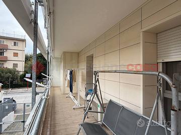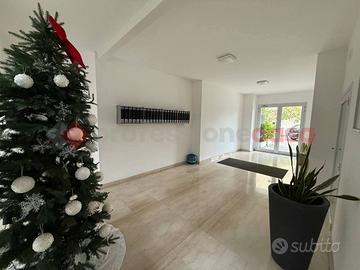 L'appartamento è composto da un'ampia zona living con angolo cottura, due camere da letto, due bagni e un balcone di 30 metri quadri circa.