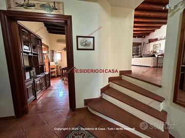 L'interno si distingue per ambienti ampi e ben distribuiti: soggiorno, salone con camino, cucina abitabile, due camere da letto, una cameretta soppalcata, due ripostigli, due bagni (uno con doccia e uno con vasca) e lavanderia.