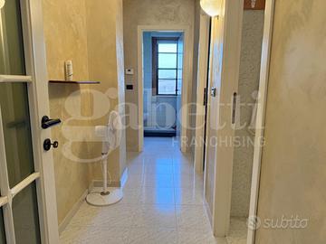 L'immobile è composto da un ingresso su disimpegno, soggiorno con cucina abitabile, tre camere da letto e doppio servizio di cui uno quello padronale servito sia da vasca che da doccia.
