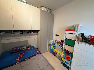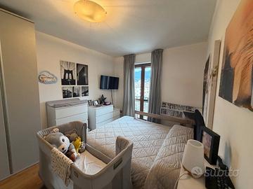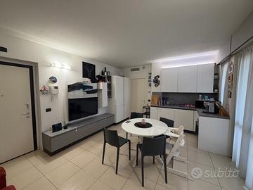 L'interno, in condizioni impeccabili e praticamente nuovo, vanta una camera da letto e una cameretta, un luminoso soggiorno con angolo cottura e un bagno moderno. L'impianto di climatizzazione centralizzato assicura il massimo comfort in ogni stagione.