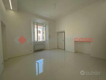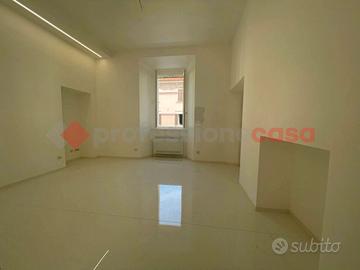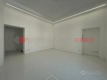 Sito al piano 1° senza ascensore, si estende su una superficie di 102 metri quadrati calpestabili ed offre ampi spazi, cosi come una distribuzione interna razionale e sapiente degli ambienti, tutti ben arieggiati, grazie alla presenza di numerose finestre e particolarmente luminosi grazie all'esposizione su tre lati e soprattutto ai suoi soffitti alti 3.50 mt.