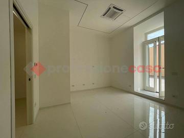 Appena entrati ci accoglie un salone con possibilità di mettere un Desk per ricevimento al pubblico, all'interno si dirama con la zona delle due camere di generose dimensioni che possono essere adibite a sale riunioni, una terza camera con bagno privato ed un secondo bagno con annesso ripostiglio.