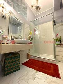 TERRACINA - VIA PONTE ROSSO: Meravigliosa dimora di charme con pareti tappezzate, soffitti decorati e arredi di pregio a pochi passi dalla celebre Via Roma. Situato all'interno di un palazzo con stile dell'architettura urbana degli anni 70' proponiamo in esclusiva la vendita di questo appartamento di lusso che si sviluppa su 85 mq. di interni eleganti e offre un meraviglioso terrazzino panoramico di 15 mq. che offre vedute pittoresche verso la città alta e il Palazzo Braschi, rendendo questo spazio la cornice perfetta per momenti di relax o per organizzare esclusivi e/o cene en plein air. Impreziosita da ambienti finemente decorati con pareti tappezzate, soffitti alti e arredi di pregio, questa proprietà si distingue per l'atmosfera di lusso raffinato ed elegante che si respira negli spazi interni. La posizione privilegiata dell'appartamento garantisce privacy e sicurezza, offrendo nel contempo facile accesso alle attrazioni culturali, storiche e gastronomiche che rendono Terracina una delle città turistiche più vivaci e apprezzate. L'appartamento si inserisce al secondo piano senza ascensore. La distribuzione degli spazi è stata pensata per massimizzare comfort e funzionalità. L'ampio ingresso ci conduce a sinistra nel soggiorno di rappresentanza ampio e luminoso e a destra all'interno della cucina, moderna, iper-accessoriata e con spaziosa zona pranzo, ambiente questo dotato di uscita all'esterno nel balcone, attrezzato con lavabo e spazio per lavatrice. Un elegante disimpegno, arricchito da mensole e piccolo ripostiglio chiusi da porte in legno massello, delimita e ci separa dalla zona notte, suddivisa da una camera da letto spaziosa arredata con letto matrimoniale e armadi, un elegante bagno con doccia e sistema di areazione ed una camera matrimoniale con ampia finestra. La proprietà, che si presenta in ottimo stato, si presta anche ad una diversa distribuzione degli spazi per poter eventualmente godere di una terza camera da letto. Questo