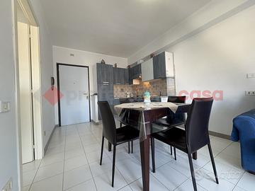 L'ingresso dell'appartamento si apre su un'ampia e luminosa zona giorno con zona pranzo, area relax e accesso diretto al balcone vivibile con un tavolo per due persone.