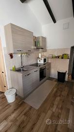 La casa è composta da un piccolo ingresso con ripostiglio , salone con angolo cottura e divano letto , TV e WI-FI , condizionatore.
