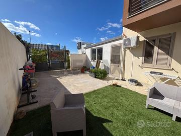 Rif: 40791043-44 Classe energetica: B - EPglnr: 77.26 kWh/m² In vendita a Terrasini, in via Vito Cavataio, appartamento piano terra di circa 130 m² in stabile di recente costruzione (2019), pensato per chi cerca spazi comodi, funzionalità e unestensione esterna davvero rara in zona. Spazi interni Lingresso ampio accompagna alla zona giorno open space con cucina-soggiorno, luminosa e ben distribuita, con accesso diretto al giardino privato: uno spazio riservato e vivibile, ideale per pranzi allaperto, area relax o un piccolo orto urbano. La zona notte è composta da tre camere da letto con metrature comode, perfette per una famiglia. Completano la casa un bagno, un ripostiglio e una stanza lavanderia, elementi che aumentano la praticità nella vita quotidiana. Limmobile è dotato di: Riscaldamento autonomo con radiatori 3 condizionatori già installati e funzionanti + predisposizione per un ulteriore split Infissi in PVC a taglio termico (ottimo isolamento termo-acustico) Classe energetica B, per comfort tutto lanno e consumi contenuti La proprietà include inoltre posto auto assegnato e un plus davvero utile: ingresso indipendente con possibilità di accesso anche con automobile, che garantisce autonomia e comodità senza rinunciare al contesto condominiale. Posizione Zona strategica e servita: palestre, supermercati, bar e stazioni di servizio a pochi passi. Il Duomo di Terrasini è raggiungibile in circa 10 minuti a piedi e la spiaggia della Praiola in circa 15 minuti. Un contesto ideale per chi vuole tutto vicino, ma lontano dal caos della movida. COLLABORIAMO CON TUTTE LE AGENZIE