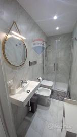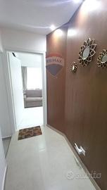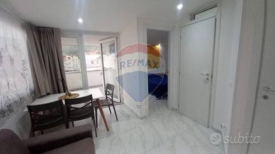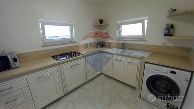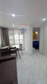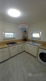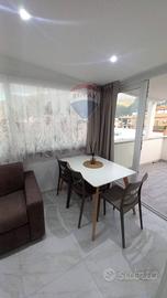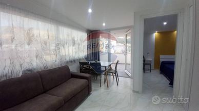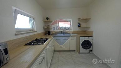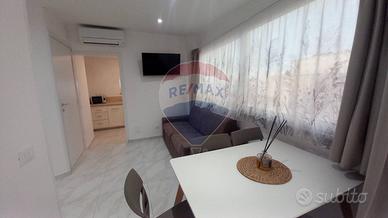 Lappartamento è composto da un soggiorno con accesso a un piccolo terrazzo che si affaccia sul prospetto principale, una cucina, un servizio con doccia e una camera da letto matrimoniale. Le finiture comprendono infissi in alluminio con vetro camera, porte interne in legno, pavimentazione in gres porcellanato e condizionatori in ogni stanza, garantendo il massimo comfort abitativo.