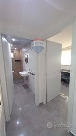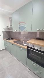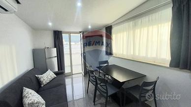 Lappartamento si presenta con ingresso su un piccolo corridoio che conduce a una luminosa cucina open space, caratterizzata da ampie vetrate. La zona notte è composta da una camera da letto matrimoniale e da un servizio con doccia. Le finiture includono infissi in alluminio con vetro camera, porte interne in legno e pavimentazione in gres porcellanato grigio. Ogni ambiente è dotato di climatizzatore, garantendo comfort in ogni stagione.