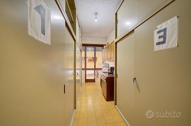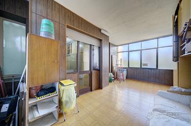 Il terrazzo originario addossato alla porzione del complesso affacciata sulla Via Oxilia è stato chiuso con due pareti vetrate e condonato come veranda con superficie di tipo residenziale, per cui le porzioni di parete possono essere totalmente aperte e lo spazio verandato può essere inglobato nell'appartamento.